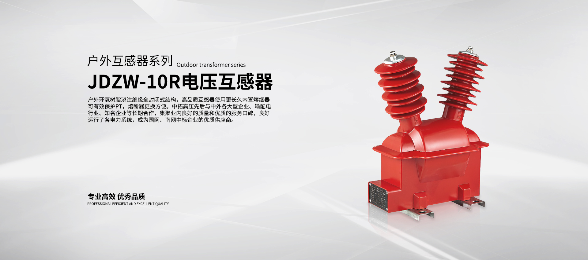 浙江中拓高壓電器有限公司,創(chuàng)建于2006年,是一家專業(yè)從事各種先進(jìn)電流、電壓及一二次深度融合互感器的自主研發(fā)、設(shè)計、生產(chǎn)、銷售為一體的技術(shù)企業(yè)。公司位于樂清市經(jīng)濟(jì)開發(fā)區(qū)。擁有互感器各種設(shè)備100多套,擁有多項自主知識產(chǎn)權(quán),獲得多項國家證書。年生產(chǎn)各類10kV及以上互感器50多萬只,是國內(nèi)智能化互感器主要生產(chǎn)企業(yè)之一,參與了眾多互感器的設(shè)計、開發(fā)和標(biāo)準(zhǔn)指導(dǎo)。